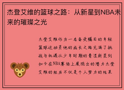 本文将深入探讨坎塞洛这一足球运动员的蜕变之路,从最初的边缘球员逐步成长为一名世界级后卫。文章将从四个方面进行分析:坎塞洛的起步与挑战、技术与战术的提升、在顶级联赛中的表现,以及未来的发展前景。通过详细阐述他的职业生涯,本文旨在展现坎塞洛如何克服困难,不断进取,最终实现自我超越,并展望他在未来可能取得的成就。 1、坎塞洛的起步与挑战 坎塞洛出生于葡萄牙的一个普通家庭,自小对足球产生浓厚兴趣。他在青...